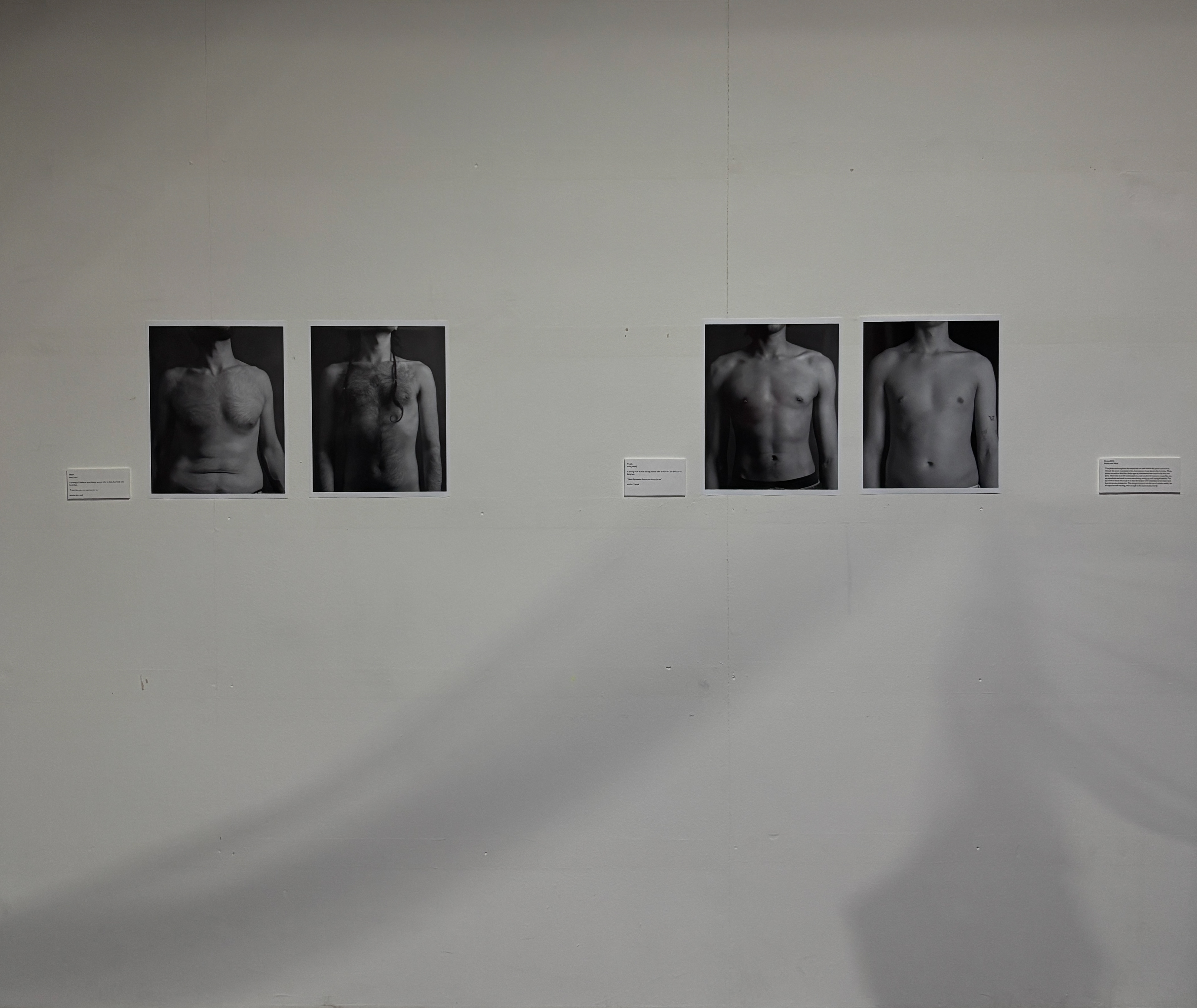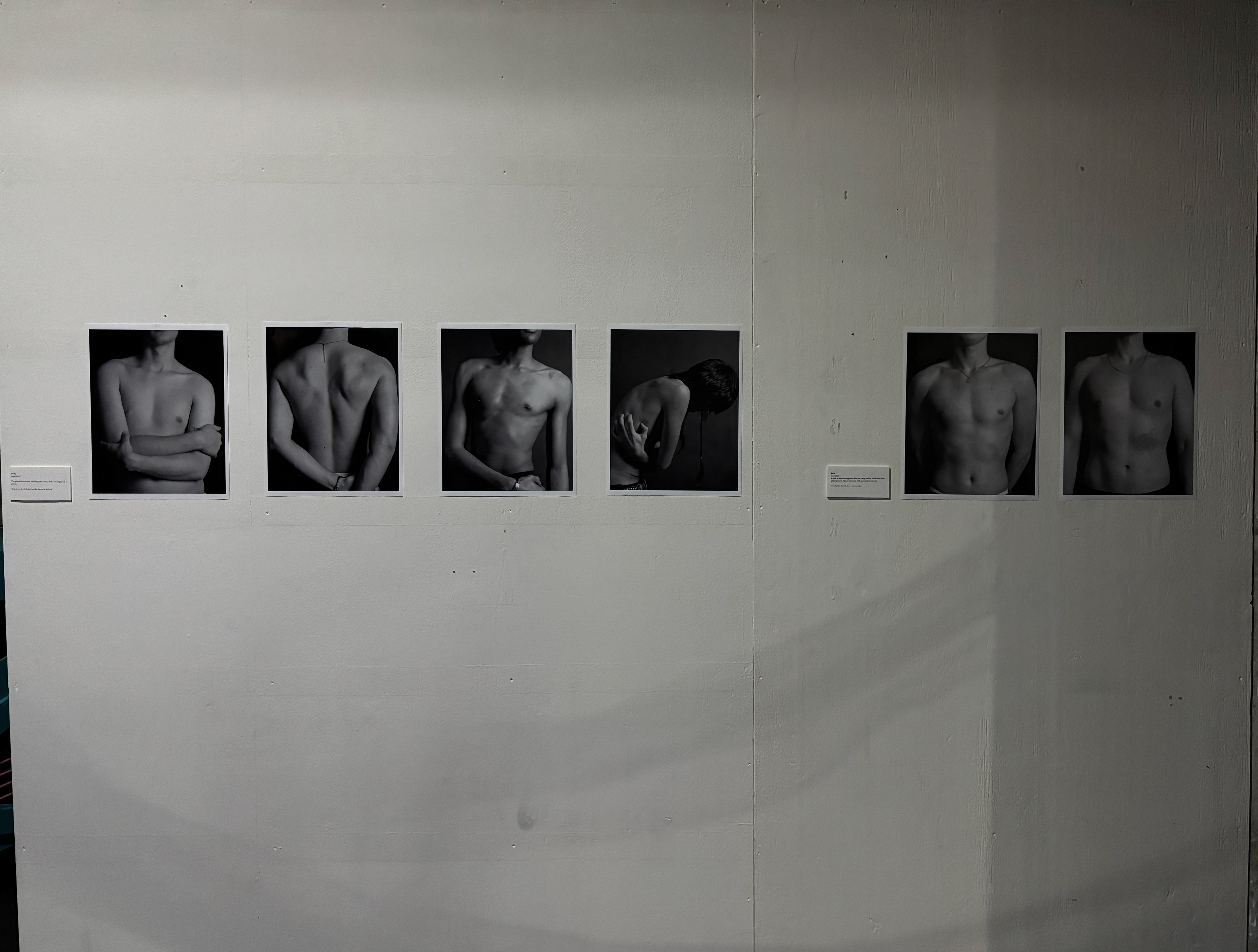 Noun This photo series explores the nouns that are used within the queer community. Outside the queer community this phenomenon is not known by everyone. These nouns are used to describe a body type by thickness or how much body hair you have. They came in to the community to create inclusivity but now nouns like this are sexualised and result in toxic masculinity, misogyny and eating disorders. The use of these nouns has made it so that the body is now sometimes more important than the person themselves. This categorisation is just the use of certain words, but it’s impact is still very big, even though in the end it is just a body.